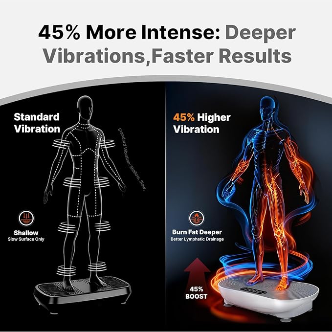 This vibration plate works great and does exactly what it says it will. It’s easy to use, feels solid, and the vibration is strong but adjustable. I’ve been using it regularly and am very happy with the results. Overall, it’s a great product and definitely worth it. Highly recommend!